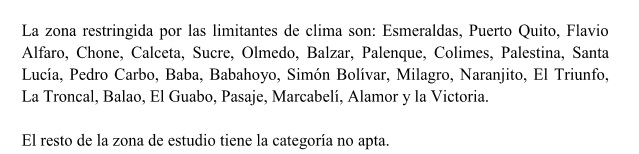 ZONAS OPTIMAS ,BUENAS Y RESTRIGIDAS PARA CULTIVO DE BANANO EN ECUADOR