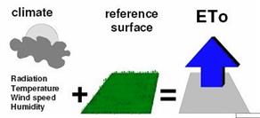 La ETo se puede calcular utilizando datos meteorológicos. Como resultado de una consulta de expertos realizada en mayo de 1990, el método de FAO Penman-Monteith ahora se recomienda como el único método estándar para la definición y el cálculo de la evapotranspiración de referencia. El método de FAO Penman-Monteith requiere datos de radiación, temperatura del aire, humedad atmosférica y velocidad del viento.