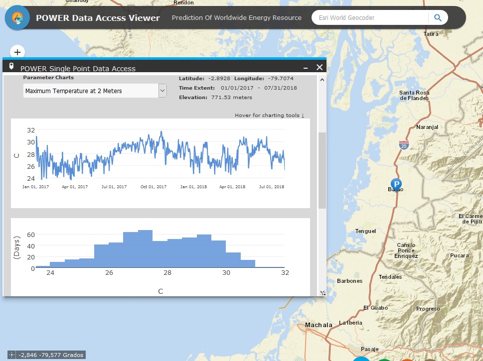 Información del clima: Estadisticas hasta 20 años, indicar coordenadas GPS, datos a 2 mts superficie terrestre.