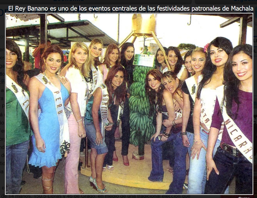 Todas las candidatas a reina,posan frente al racimo Rey Banano.
