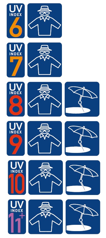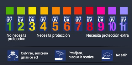 Utilizar porteccion recomendada al aire libre entre 9:00 y 16:00. (En el tropico solo utilizan gafas por el exceso de calor y parasol las damas.)
