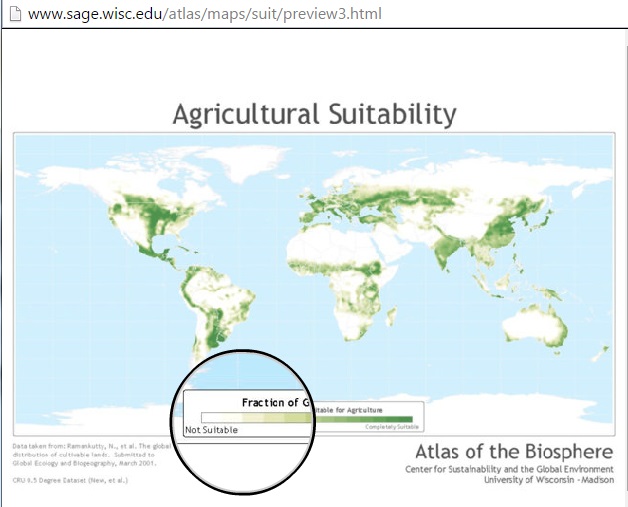 SAGE es un centro de investigacion del Instituto NELSON de Estudios Ambientales de la Universidad de Wisconsin - Madison,el cual presenta mapas de tierras cultivables y pH del suelo de dichas tierras. Observando Sudamerica encontramos que los suelos aptos para la agricultura y destinados a la produccion de banano se encuentran en color verde. Tambien tenemos el mapa del pH del suelo cuyas tierras representan una escala de colores de rojo,azul y blaco,que significan acido,neutro y alcalino.