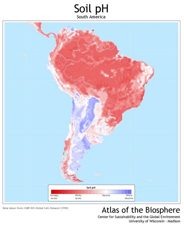 Al analizar Ecuador encontramos que las tierras cultivables de color verde son por su pH de color rojo que significa acidas.