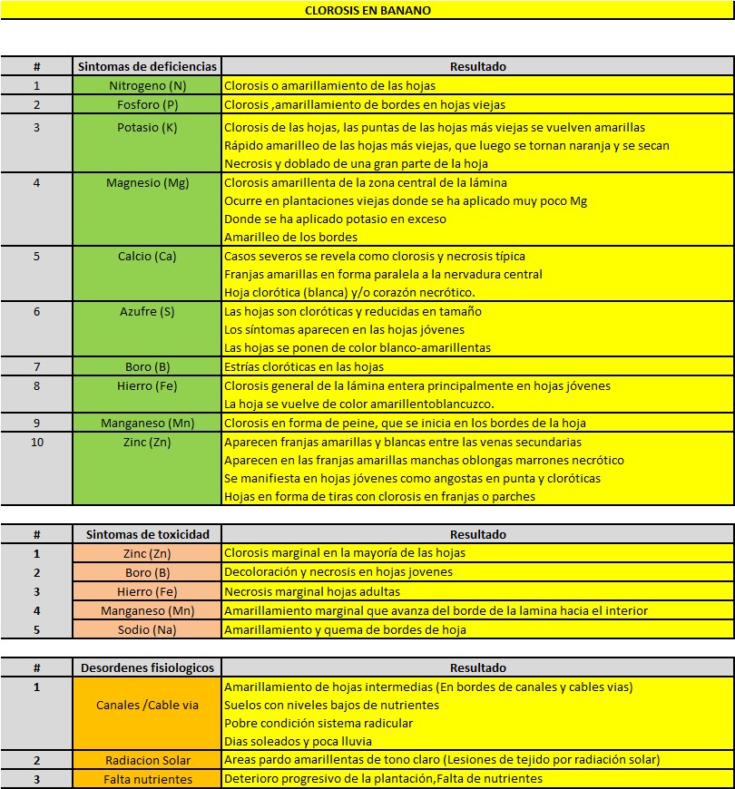 El Dr. David Dibb Presidente del Instituto de la Potasa y el fosforo nos informa que el banano se caracteriza por extraer altas cantidades de nutrientes del suelo, factor que está relacionado con la productividad. Estos nutrientes necesariamente deben ser repuestos para que la producción optima del monocultivo de mantenga en el futuro. Los análisis químicos edáficos y foliares son vitales para conocer deficiencias, toxicidad y malformaciones por desnutrición.