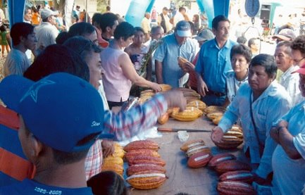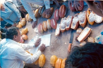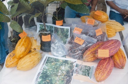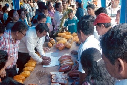 Jueces deliberando calidad de mazorcas de cacao presentadas en concurso "Cacao Nacional Fino de Aroma". (Feria AgropecuariaTenguel 2011)