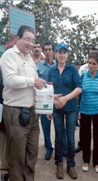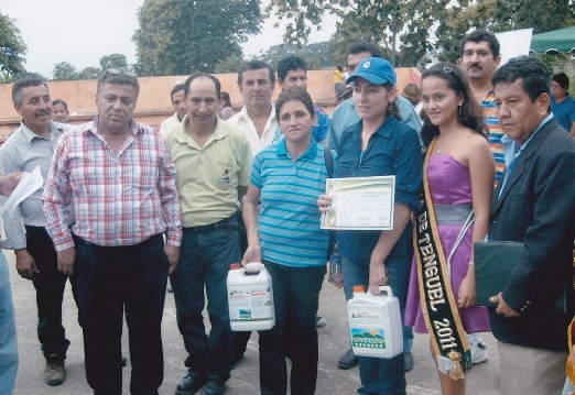 Entrega fertilizante orgánico (Viosil) agrícola a ganadora concurso (Tenguel 2011)