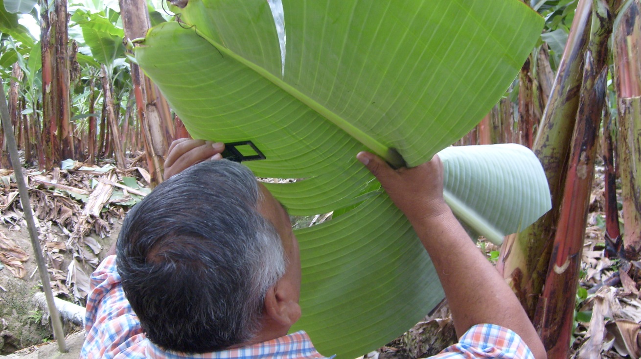 Expertos en Sigatoka negra evalúan el nivel de infección despues de la aplicación de FUMIPRO+